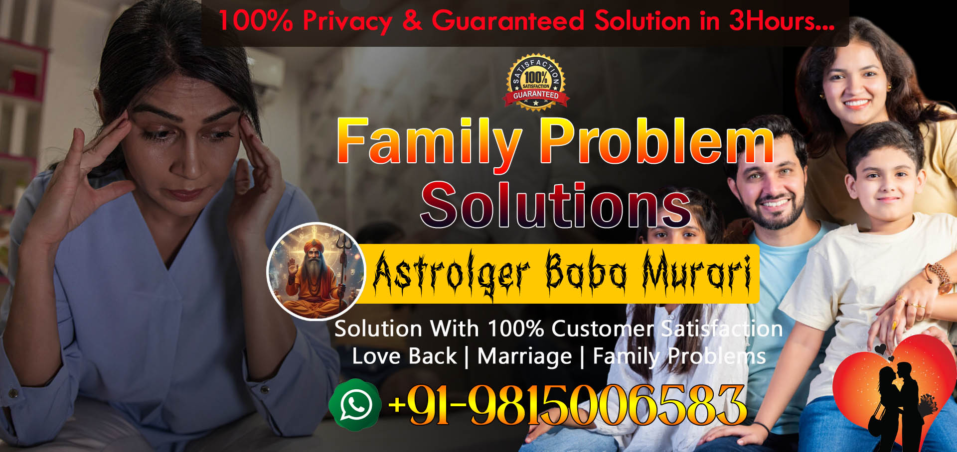 Get 100% Result within 24 Hour. We are a super specilast in Love & Marriage Problem Solution. Are you Looking for Instant Problem Solution Than call to Astrologer Baba Murari Ji. Get Love Problem Solution with our best Astrologiest team. We provide guarenteed Love Solution within 24 hour to our clients.