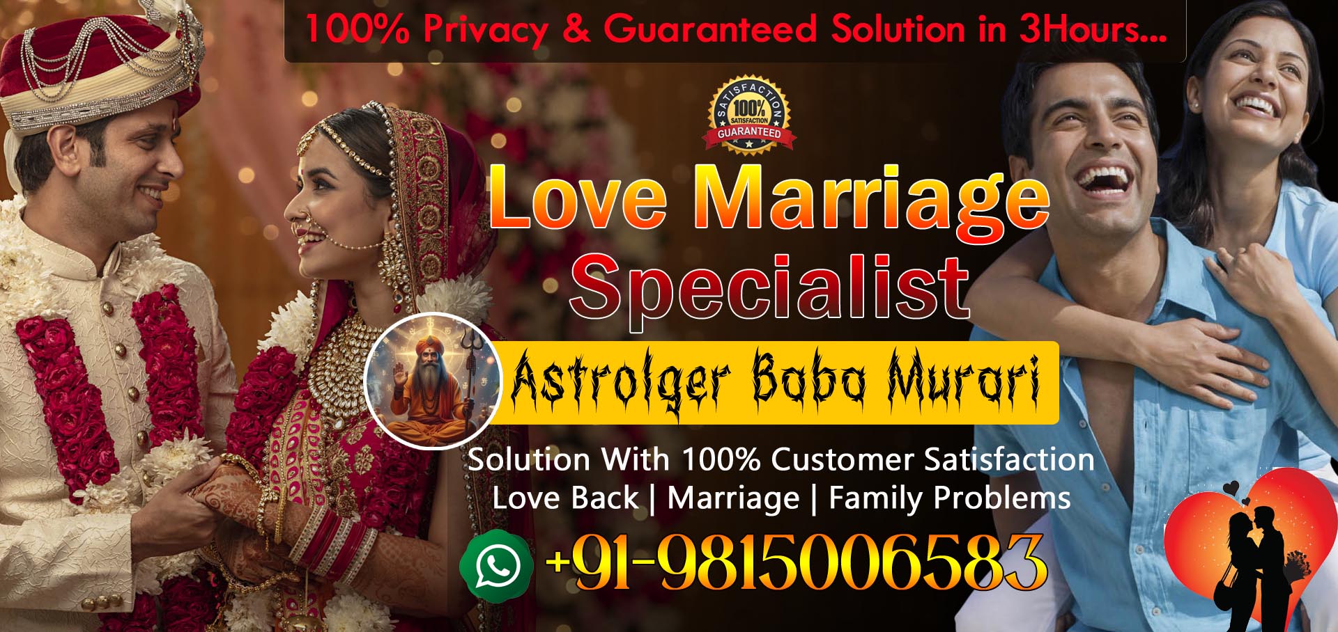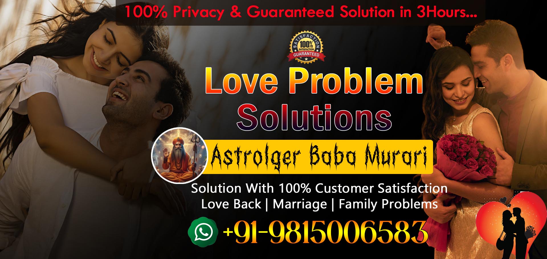 Get 100% Result within 24 Hour. We are a super specilast in Love & Marriage Problem Solution. Are you Looking for Instant Problem Solution Than call to Astrologer Baba Murari Ji. Get Love Problem Solution with our best Astrologiest team. We provide guarenteed Love Solution within 24 hour to our clients.